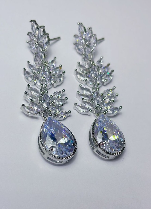 Brinco Luxo Gotas de Zircônia banhado a ródio branco (MJ34412)